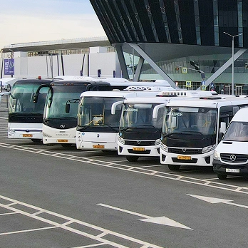 Большой автопарк. У нас есть транспорт для любой задачи. Для перевозки детей предлагаем автобусы на 25-50 мест Hyundai, Yutong, Scania, Mercedes-Benz. Если нужно перевезти большую группу, у нас есть двухэтажные автобусы на 75 человек. Тем, кого интересует более комфортабельный транспорт, предлагаем микроавтобусы премиум и VIP класса.